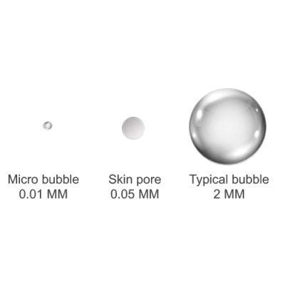 Micro bubbles are 10 microns in diameter, making them smaller than the pores on your skin. This allows the micro bubbles to dive in, exfoliate and cleanse all skin pore impurities while removing bacteria that can cause undesirable effects like itchy skin or body odor. Once deeply cleaned, your skin is primed to absorb the oxygen it craves, encouraging the release of toxins and boosting the skin cells’ metabolic health and growth.